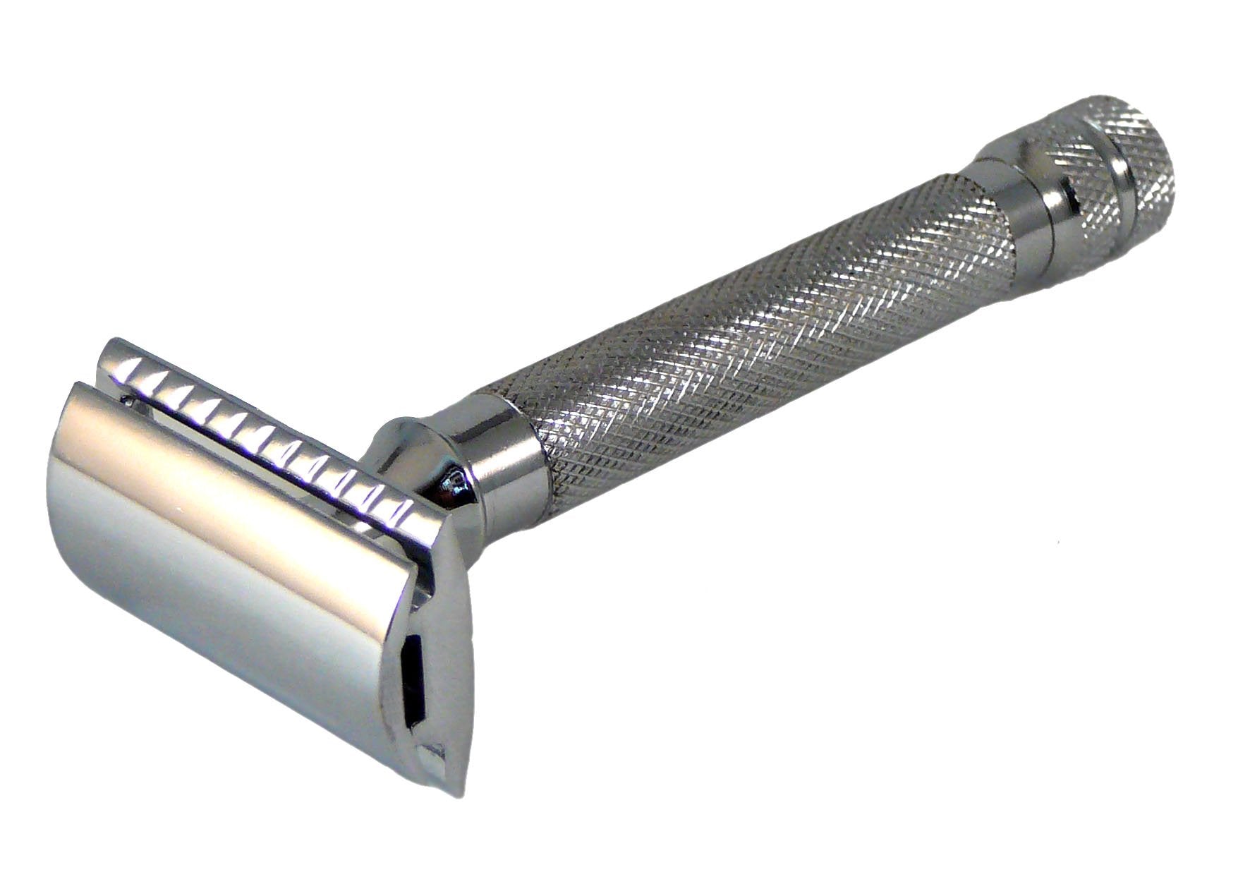 Unfortunately, the razor itself is not weighted with any kind of natural balance at all. The steel handle makes up all the heft of the razor while the cutting head material is very light, much more so than a Merkur razor. When a blade is installed in the razor, the safety bar provided an easily noticeable uneven gap between the blade and bar on each side. While many razors are off by a few millimeters here and there, this one was very uneven, enough so that it could provide a potential risk of accidental injury to the user.