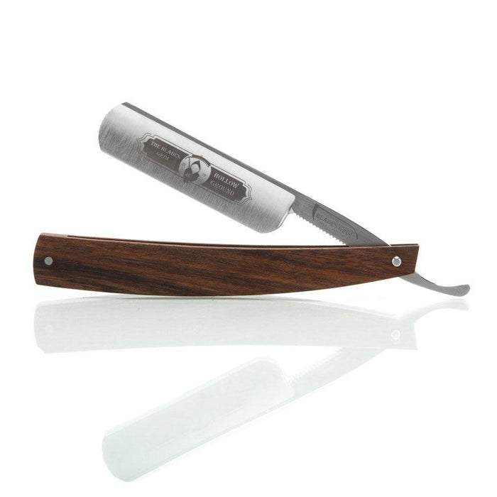 - A 6/8" Round Tip Straight Razor with Exotic Rosewood Scales