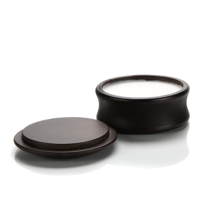 This lathed-turned handsome dark wood bowl comes with a matching lid etched with Northcutt. A perfect and practical addition to any shaving outfit.