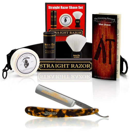 DOVORazors Include: Stainless Steel! 6/8" Round Tip Blade Full Hollow Ground Pearlex Scales Luxury Set Includes: Satin Tip Synthetic Shave Brush...