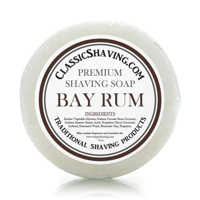 Classic Brand, Traditional Shaving Products, Large Size (3" diameter) Bay Rum Shave Soap Cake/Puck.