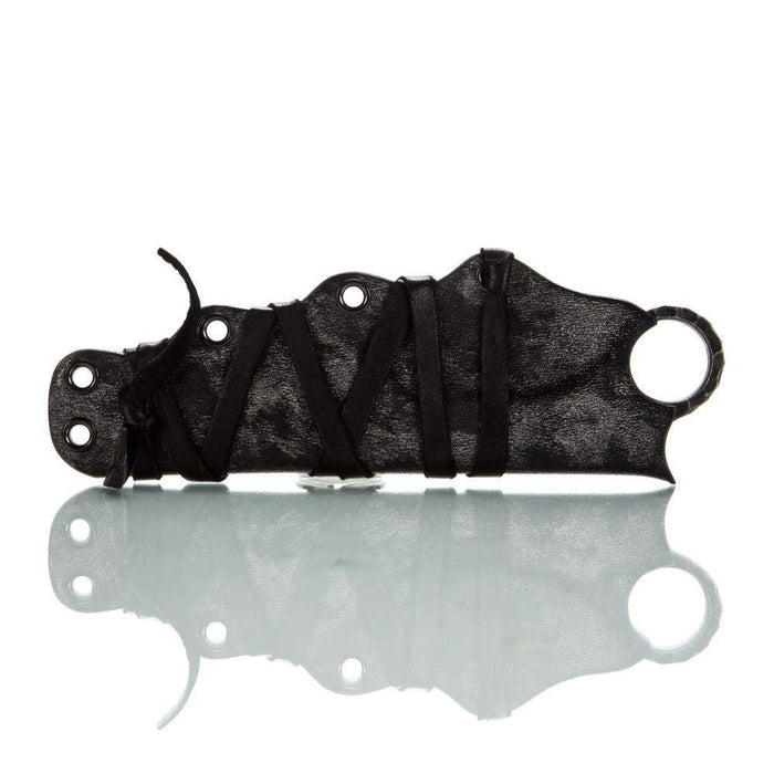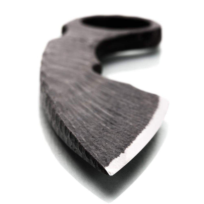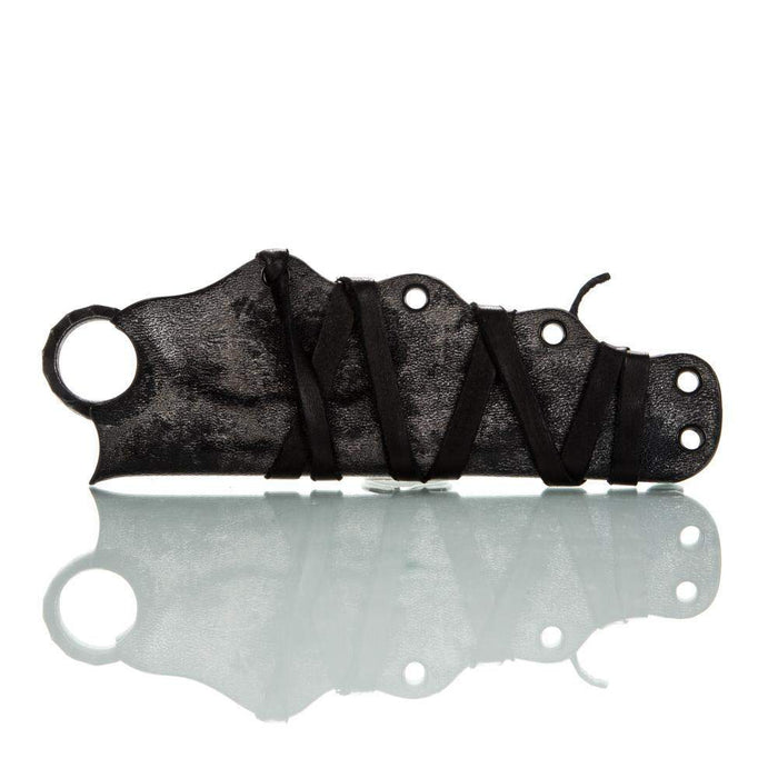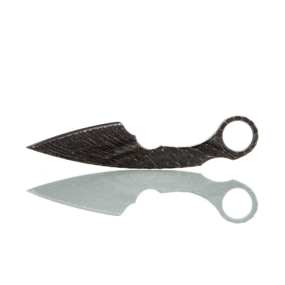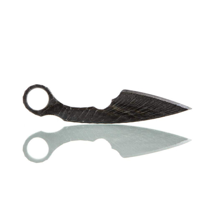 This knife is based on the well known Japanese utility blade, the kiridashi. The Sage Blades version is a sturdy, 1/4″ thick, all steel knife. It measures about 7 inches with a full length handle and ring to give excellent control and grip retention. Although the blade is short, it will retain it’s super sharp edge very well and performs great over a wide range of cutting tasks from delicate, scalpel type cutting to batoning through wood. When held far back by the ring, it can even hack quite effectively. It is well suited to urban use, as well as wilderness bushcraft. In an emergency situation, the thick steel can come in handy for prying, and, with no handle material to get in the way, it can be quite easily lashed to a pole to create a spear. The sheath is also simple, yet very effective. It involves a basic system of using an attached deer skin lace to lash the sheath to the belt. There is a long list of benefits to this simple method: the lace can be replaced with any other cord if necessary; it can be mounted horizontal or vertical, left or right, up or down; it will work with any belt size; and it keeps the sheath tightly secured in place on the belt and close against the body with a low profile. (photos and instructions on how to do this can be provided) The cord can also be used to carry the kiridashi as a “neck knife”. Also, the design of this sheath, with only the ring showing, means that it can only be drawn by putting a finger through the ring which makes it unlikely to be drawn by someone other than yourself. Last, but certainly not least, the sheathed knife can be carried in the pocket of most types of pants with the ring at or slightly below the top of the pocket. Because of the shaping of the sheath (the point above the ring), the knife can be drawn from the pocket with the sheath catching and remaining in the pocket. This is done with only the forefinger through the ring and preferably drawn into a reverse grip. This means that the kiridashi is kept secure and hidden in the pocket, yet can be drawn – into a good self-defense grip – in a split second, without actually reaching into the pocket.