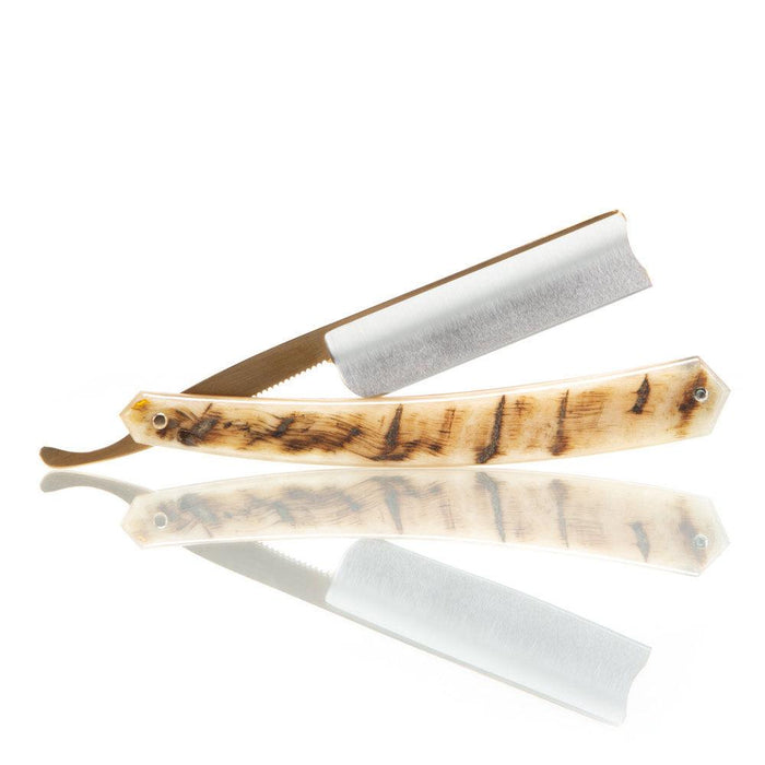 • A 6/8" Barbers Notch Straight Razor with Rams Horn Scales