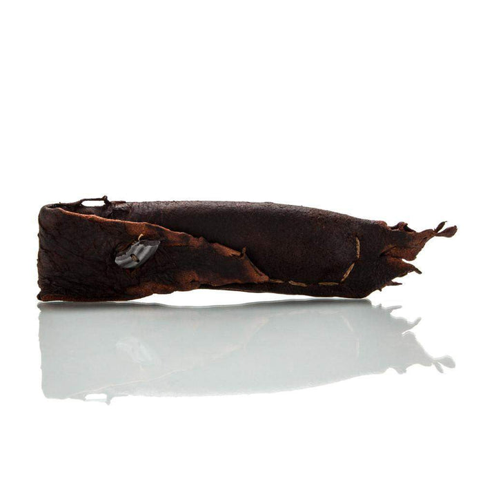 – Elk skin sheath with damascus steel button (left over from the razor forging)