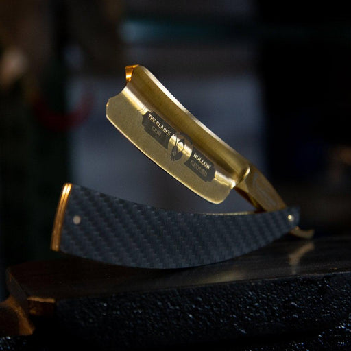 Thiers IssardAbout the Straight Razor: Carbon Steel Double Edged Round Nose 6/8 Blade Full Hollow Ground Carbon Fiber Scales Leaf Design on Spine Sheffield Log...
