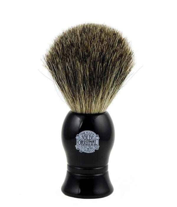 The Vulfix No. 1000A Pure Badger brush in faux Ebony is a handmade brush with an injection molded handle. It is made of 100% Pure Badger.