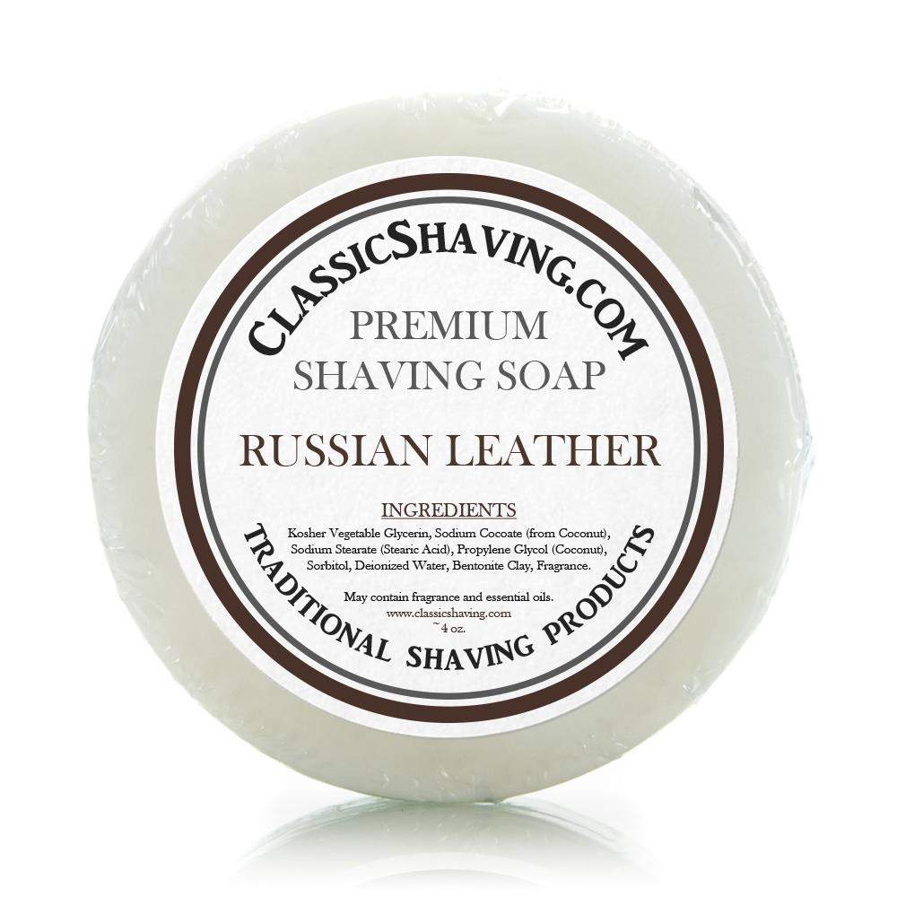 2Classic Brand, Traditional Shaving Products, Large Size (3" diameter) Russian Leather Shave Soap Cake/Puck.
