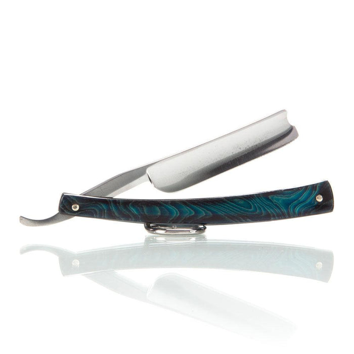 Here is a wonderfully restored Frederick Reynolds 5/8 Straight Razor with barber's notch. This blade has a beautiful stamp on the blade itself and bright blue scales.
