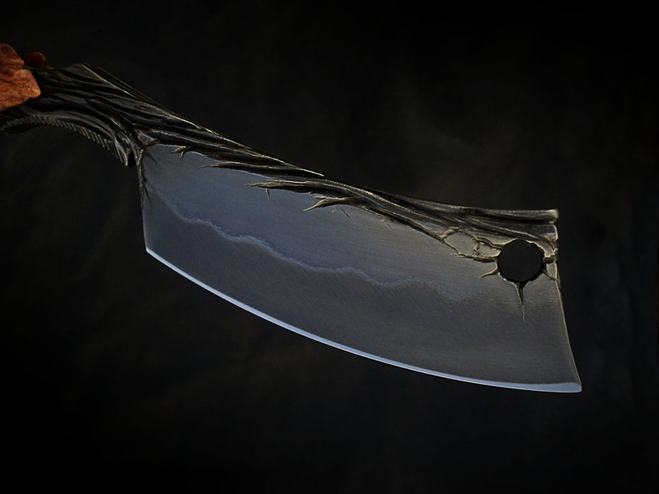 - Deferentially hardened (using clay coating) and tempered to 63-64 Rockwell hardness