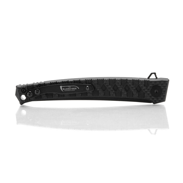 🔪 Meet the Grim 338BFG, a folding knife engineered for those who demand both performance and style. Starting with a high-grade steel frame and a locking handle wrapped in aggressively etched black carbon fiber, this knife offers superior grip, even in the slickest environments. Whether you're on the job or in the field, the 338BFG's anti-slip handle ensures maximum control when it matters most.