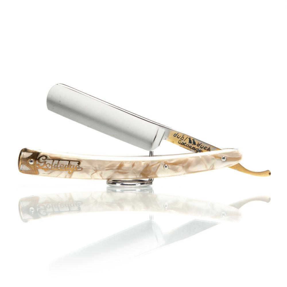 An amazing New Old Stock Dubl Duck Goldedge. This is a massive Dubl Duck. It's blade is over 6/8 and just under 7/8 it appears to be a 7/8 from factory. We have never seen a nicer or larger Dubl Duck.