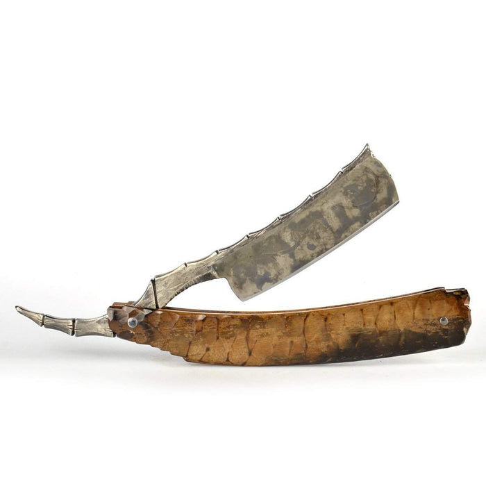 At Classic Shaving, we believe in using simple, high-quality tools that you only need to buy once and will last a lifetime. Dylan Farnham's work delivers just that. From its ancient scales to its crazy sharp hand-forged edge, this tool is usable art. Razor comes with a custom leather sheath. Don't hesitate with this future heirloom; Dylan's razors never sit on the shelf very long.